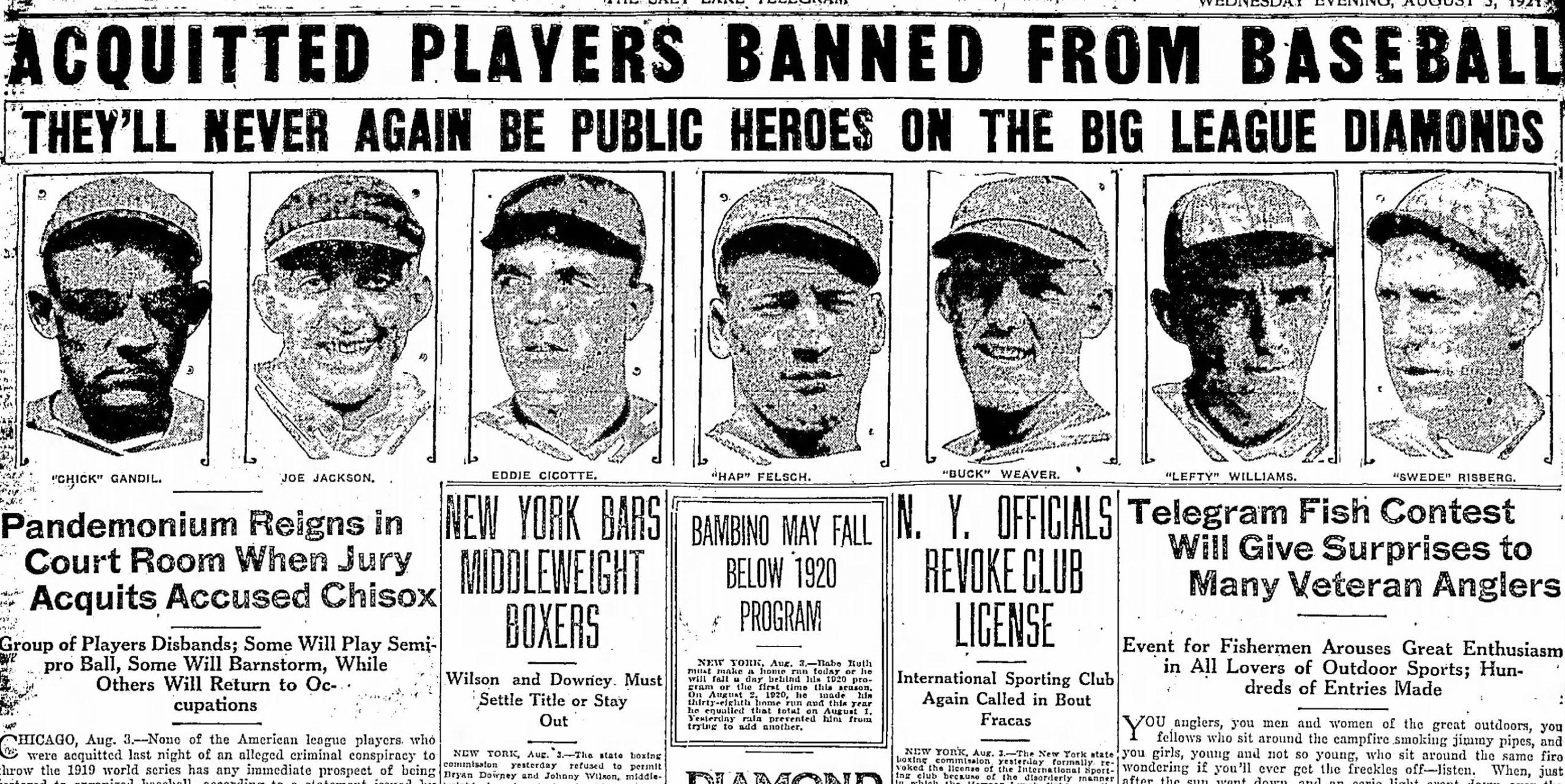 1920年、White Soxの八百長が発覚後、Joe Jacksonは大陪審での宣誓証言、そしてマスコミの取材において「試合前に八百長への加担を約束した」、「シリーズ途中に約束された報奨金の一部を受け取った」と語っています。